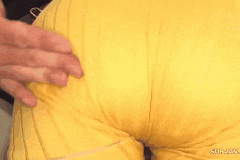 尻肉をプリンプリンと揺らされてしまっているGIF画像。モミモミと尻肉を手の平で揉んで、感触を味わうのもいいが、ユサユサと揺らしてみて、その揺らされて波打つ尻肉を眺めるのもお尻の柔らかさ、豊満さが伝わってきてお尻のエロさを堪能できる。